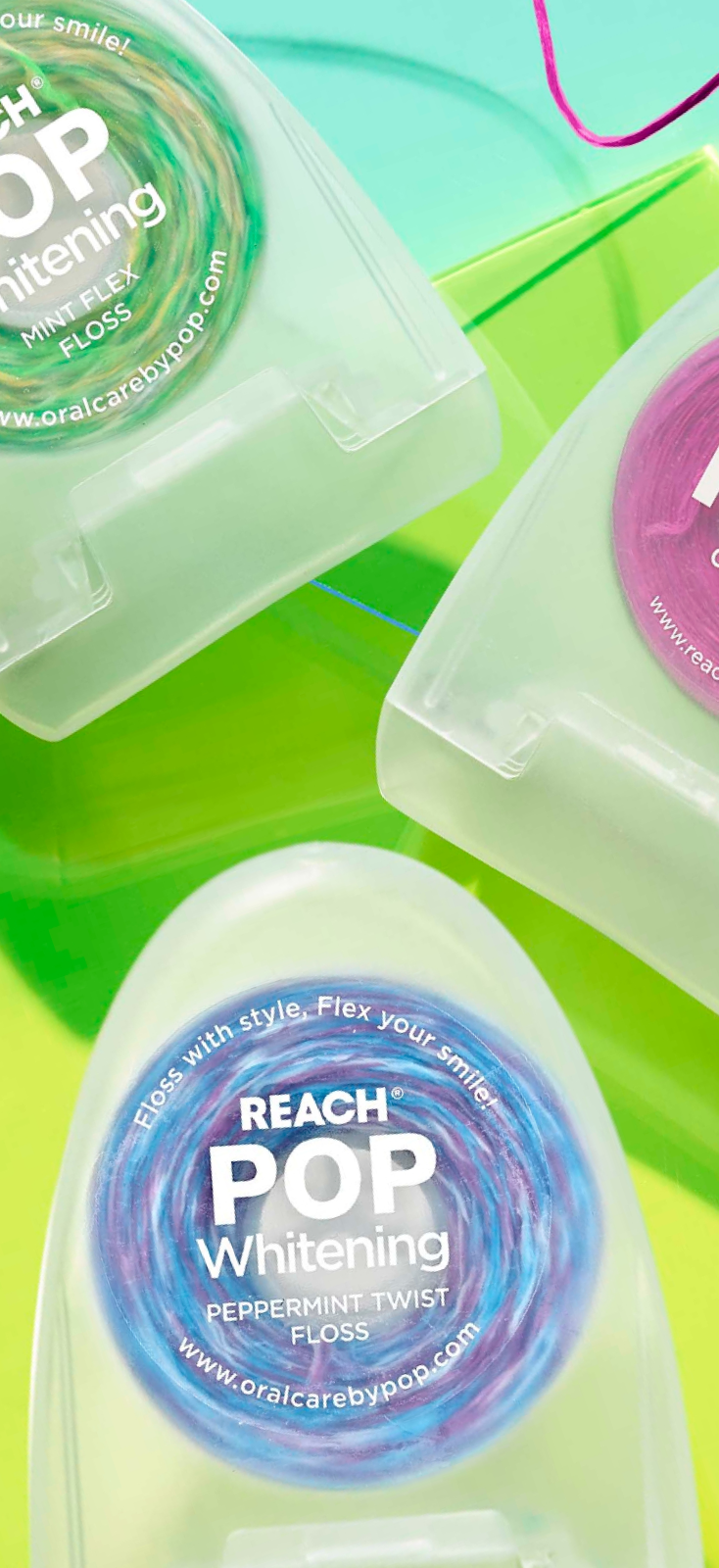 REACH®, an innovative and internationally trusted brand in dental hygiene, has been helping to prevent cavities and fight gum disease for nearly 50 years. REACH POP builds on this tried-and-true tradition and is the first floss in the REACH family to bring color to oral care so you can add some style to your smile.